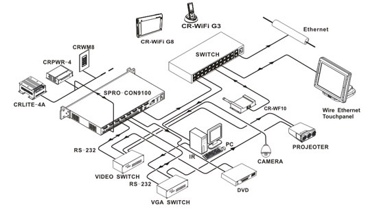 SPRO-CON9100一款标准型网络可编程控制主机:1U机箱设计,采用主频高达210MHz的32位内嵌式处理器,内置超大内存,可高速运算复杂的逻辑指令;支持8路红外线接口、8路I/O输入/输出。支持CRNET、CRLINK及以太网(TCP/IP)三种控制方式。支持控制RS-232,RS-422/RS-485等多类第三方设备。 内嵌式红外学习器。