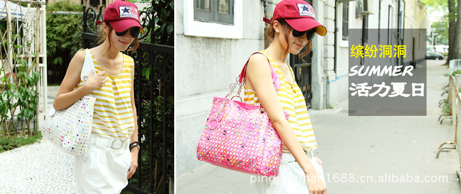 爆款 2012新款韩版夏季 镂空真皮糖果色包包 单肩包 斜跨包