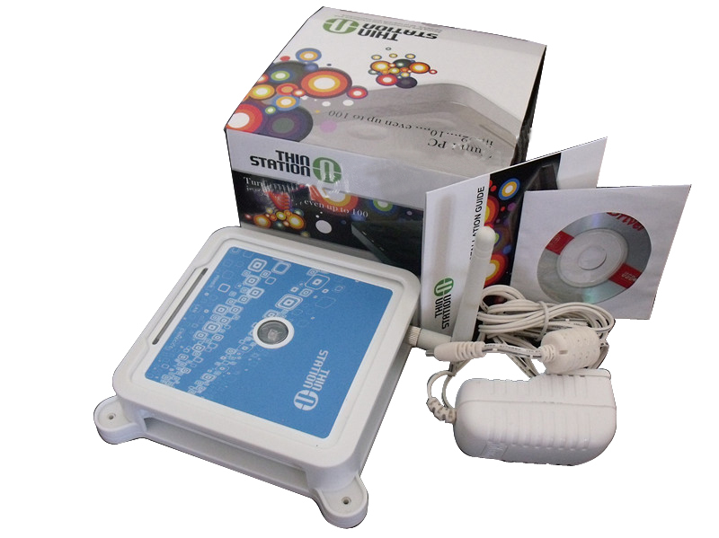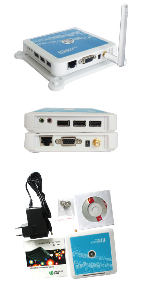 云终端thinstationN380产品接口 电源开关/直流电源插口 (网线接口)一个;插耳机口一个;5V电源口一个;电源开关一个。 如果您只需要另增加一台终端机,除本款产品外您只需要为工作站添加如下设备:显示器1台, USB键盘和鼠标各一只,路由器或是交换机一个, 网线一根,就可以获得与主机完全一样的Windows运行环境。