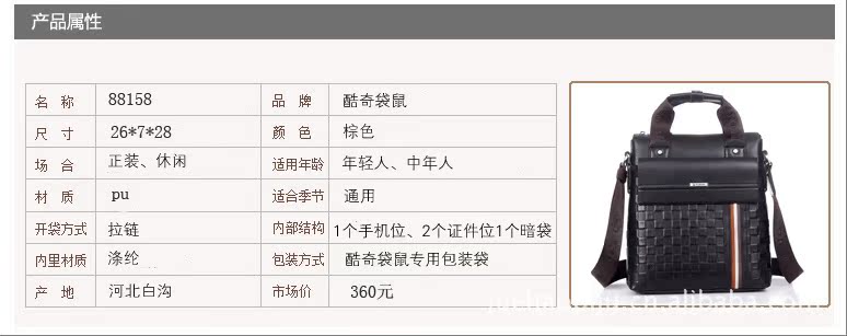 酷奇袋鼠商务休闲单肩男包 厂家直销 春夏季热销款