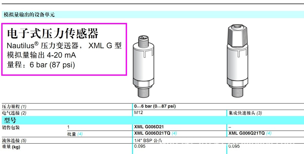 湖南库存施耐德压力传感器 压力开关 XMLG010D21: