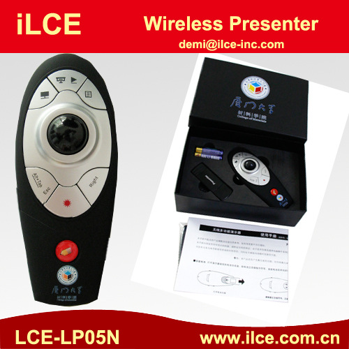 iLCE LP03无线多功能演示器集成PowerPoint演示器,能够遥控上下翻页、一键使PowerPoint进入全屏演示状态、一键黑屏。在运行随机附带的绿色软件ZoomIt后,还可提供休息时间倒计时功能。只需按一下快捷键,即可在屏幕上提供休息时间倒计时。可以实现一键进入Windows Media Center媒体中心的功能。让你摆脱电脑束缚,演讲、培训、教学更加潇洒自如。