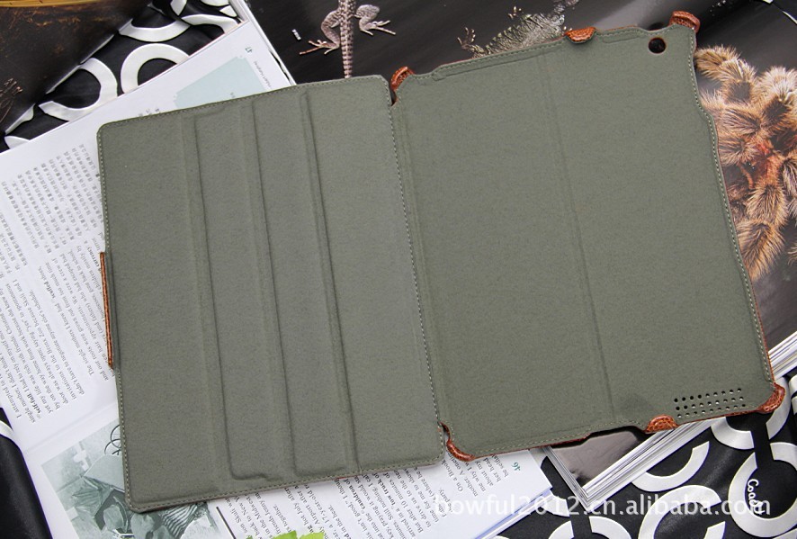 本款皮套结合了ipad2代苹果原装款式!集成一体:四折部位,按照ipad2代官网皮套设计