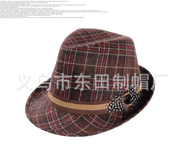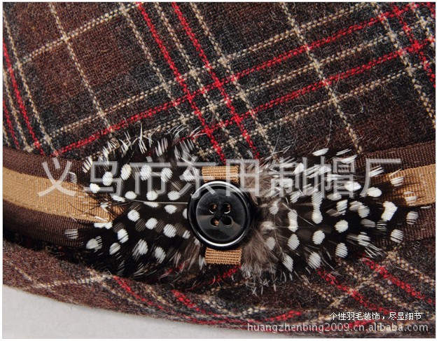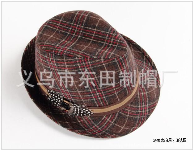 厂家供应 秋冬季 羊毛 格纹 斑点羽毛 时尚男女礼帽 定型帽 毡帽