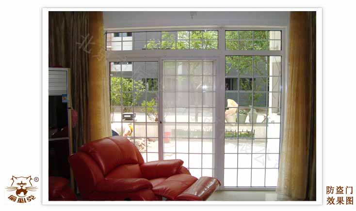 三、美观:采用欧洲风格和民族艺术的完美结合,组合成相对称的白色方格,既有装饰又有艺术感觉,区别于传统网笼式防盗窗对人的视觉和心理的困扰。