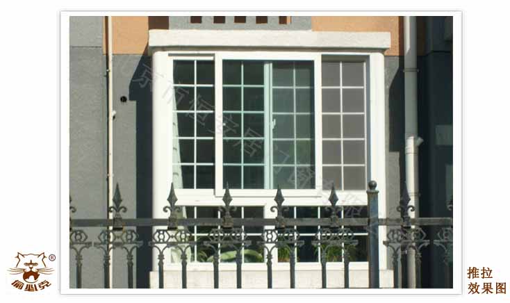 二、方便:把防盗框内装于双层玻璃中间,方便清洗;不像其它内装或外装防护栏阻碍和影响您的使用,并配有防盗纱窗可自由通风防盗和拆洗。