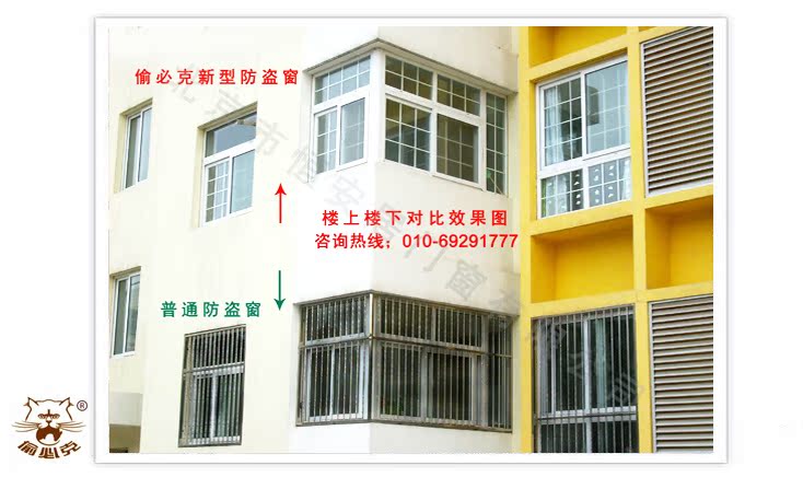 一、防盗:它采用外铝内钢的方式(内装直径一公分的实心钢棍),科学的组成多点连接的防盗框;抗拉力和抗破坏性强,防盗框内装于双层玻璃中间,采用专用防盗锁专利工艺制作坚固耐用;所以防盗性能非常高。