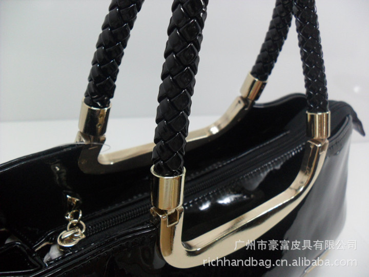 韩版纯黑手提袋 敞口拉链 ,复合式女性手提