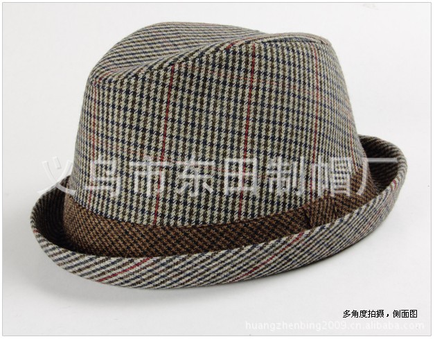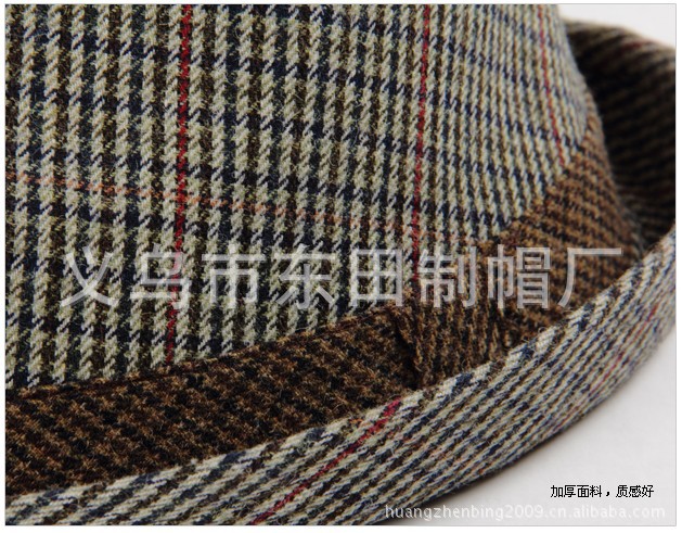 厂家供应 欧美原单 纯棉 细格子 卷边 春秋季 加厚 礼帽