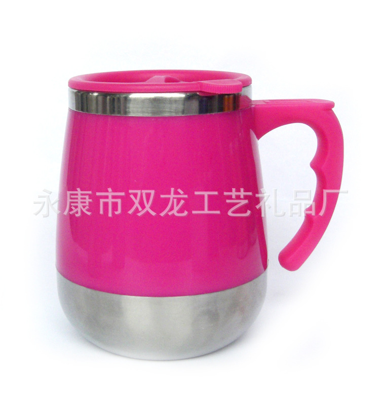 新款 圆底汽车杯 外塑内钢水杯 不锈钢 塑料 办公茶杯 广告礼品