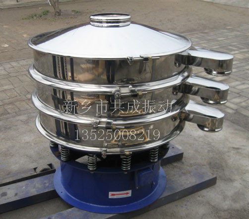 XZS型系列旋振筛是一种特殊型、高精度细粒筛分机械。该系列筛机可以通过各种不同目数的筛网,把不同颗粒、粉状物料很好地连续分离,以满足各种不同需要。 XZS型系列旋振筛是由立式振动电机轴的上下两端装有失衡的偏心重锤产生激振,或由普通电机所带振子的上下两端偏心重锤产生激振。由于驱动电机的旋转,使筛机参振部分在水平、垂直、倾斜方向三次元运动。调节上部、下部重锤的相位角,可以改变物料在筛面上的运动轨迹,满足各种比重物料的最佳筛分效果。调节上部、下部重锤的配重块,可以达到不同的激振力,以达到不同比重、不同目数物料的最佳筛分量。
