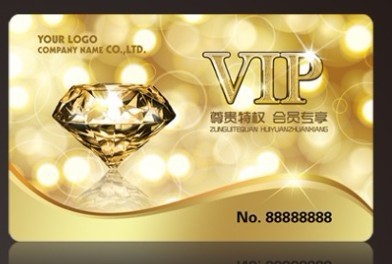 VIP卡:代表一种贵宾身份。也叫贵宾卡,一般印上VIP字样。通过卡背面细则规定VIP会员享有的服务。可以根据客户提供的素材进行版面设计,也可由客户提供设计稿,其厚度从0.35mm到0.76mm,也可以做成其它的厚度。标准大小是85.5mm* 54mm,圆角,也可以做成其它尺寸。VIP卡可以印刷单面或双面,采用丝印或胶印(CMYK四色印刷)的印刷方法。可以在每一张贵宾卡上喷上不同的数字、PIN码或文字;可以加上签名条或写字板(可以手工写字的区域);可以根据客户的要求加上低密或高密磁条(三轨磁条);可以打凸码,凸码上可以烫金或烫银;还可以打圆形孔、条形孔及各种类型的条型码,号码可以按顺序编排,也可以打个性化的、没有规律的号码。VIP卡可以做成方形、圆形及其它任何不规则的形状。
