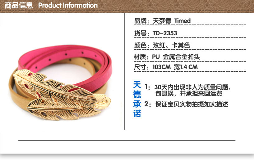 2013爆款叶子平滑扣细腰带 TD2353 女式腰带时尚节日礼品腰带批发,如有特殊要求(如尺寸、颜色、包装等)请联系在线客服详谈。