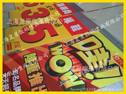 上海复星喷画有限公司成立于2000年,从事广告制作的大型喷画工厂。多年以来,复星秉承“专业生产、专业制作、专业服务”的理念,为每一位客户打造一站式贴心服务。公司现拥有10台户内武腾写真设备,2台户外第7代武腾写真设备,3台3.2喷绘设备,2台5机喷绘设备,写真日产量:2000平以上,喷绘日产量:4000平以上,专业化的后道团队,为每一位客户提供了强有力的产品质量。 多年以来持续性的稳定发展,公司已实现多元化发展平台,并培养出一支专业的安装团队,为客户提供更加广阔的服务领域,真正的实现全方位服务。复星以价廉物美,优质服务为客户提供强有力的配套制作保证,是需求客户的最佳合作对象。 复星制作范围: 户内写真:背胶写真、130克背胶写真、HP背胶写真、180克海报纸写真、可移背胶写真、背喷灯布写真、橱窗透明片写真、带胶透明片写真、相纸写真、PVC胶片写真等; 户外写真:防水背胶写真、防水海报纸写真、单透写真、防水艾利车贴写真、防水稳得车贴写真、防水正喷灯片写真、防水车贴写真、防水3M车贴写真、山本车贴写真等; 布类写真:艺术布写真、写真布写真、旗帜布写真、油画布写真、防水布写真、棉花布写真、无纺布写真等; 广告展示:X架展示(普通式、韩式)易拉宝展示(塑钢、普通铝合金、加重型铝合金、水注型、豪华宽低坐等易拉宝)拉网展示:拉网展架(铁)加画面(3X3)拉网展架(铝)加画面 (3X3)、超市商品货架等; 外光喷绘:520喷绘、530喷绘、550喷绘、刀刮布喷绘、双喷布喷绘、网格布喷绘、黑底布喷绘、喷绘旗帜布喷绘,希运布喷绘,宝丽布喷绘、单透喷绘等; 内光喷绘:520内光、550内光喷绘、内光刀刮布喷绘、美国进口3M内光喷绘、610内光喷绘等; 5米喷绘:5米550布喷、5米黑底布喷绘、5米网格布喷绘、5米刀刮布喷绘、5米610内光喷绘布等; 工程安装:大型围墙广告喷绘、卖场巨幅喷绘、房产喷绘、立柱高炮喷绘、车身广告喷绘、连锁店招牌喷绘; 板材写真:KT板展板写真、PVC板写真、雪弗板展板写真(1mm 2mm 3mm 5mm)、有机板写真,冷板写真/热板写真等; 复星喷画百位制作工人竭诚服务于每一位客户! 复星的宗旨:以人为本,客户至上,用服务与真诚来换取您的信任与支持,您的满意就是我们最大的成功! 联 系人:赵经理 电话:021-39879112-809 手机: 13122106185 咨询QQ:2360102415 工厂地址:青浦区龙联路289号A座
