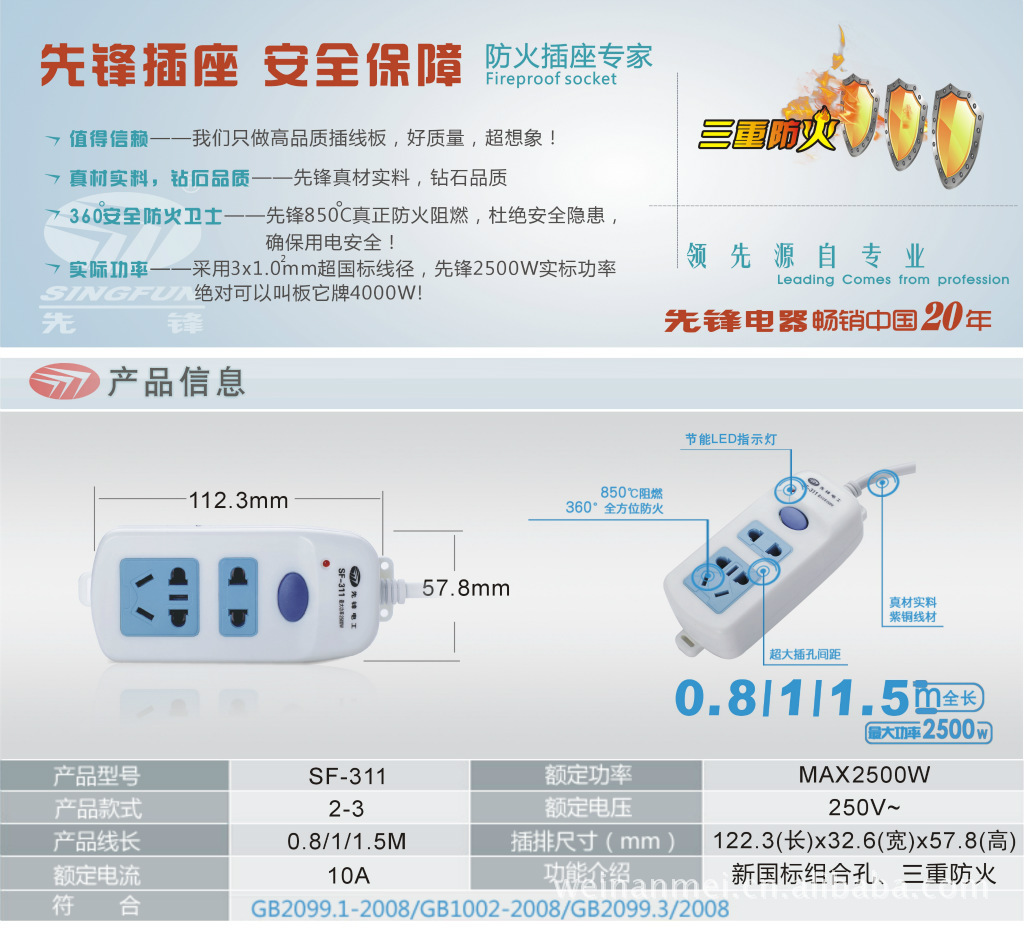 5.请不要在容易被踩到的地方使用本插座。