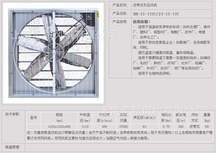 负压风机是利用空气对流、负压换气的降温原理,由安装地点的对向大门或窗户自然吸入新鲜空气,将室内闷热气体迅速强制排出室外,任何通风不良问题均可改善的机器,降温换气效果可达90%-97%。 一、负压风机产品特点:整机采用CAD/CAM设计,具有投资成本低,风量大,噪音低,耗能小,运行平稳,寿命长,效率高等特点,百叶窗自动起闭达到防尘,防水,美观大方;即可吹风,是现代化厂房降温通风的最佳选择,也可抽风。环保、节能的负压风机将成通风降温设备市场主流。二、负压风机应用介绍 1、作抽风换气用:安装在车间窗口外,一般选择下风口、往 外抽风,抽出异味气体;一般化工厂等应用较多。 2、配合湿帘使用:用作车间降温炎炎夏天,不论您的车间有多热,湿帘-负压风机系统都可让您车间的温度降至30C左右,而且有一定的湿度。 3、负压风机适用范围: A、适用于高温或有异味的车间:如热处理厂、铸件厂、塑料厂、铝型材厂、制鞋厂、皮件厂、电镀厂、各种化工厂。 B、适用于劳动密集型企业:如服装厂,各类装配车间,网吧。C、园艺温室大棚通风降温、畜牧场降温。 D、特别适用于需要降温又需要一定湿度的场所。如棉纺厂、毛纺厂、麻纺厂、织布厂、化纤厂、经编厂、加弹厂、针织厂、丝织厂、袜厂等各类纺织厂。 E、适用于仓储物流领域