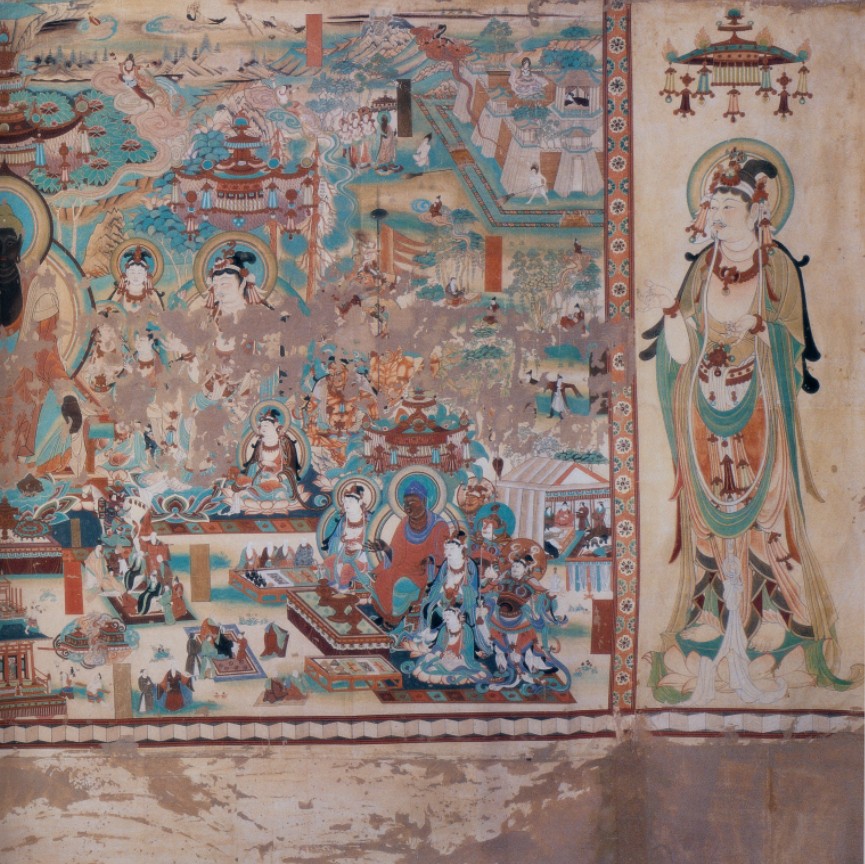 敦煌壁画包括敦煌莫高窟、西千佛洞、安西榆林窟共有石窟552个,有历代壁画五万多平方米,是我国也是世界壁画最多的石窟群,内容非常丰富。 敦煌壁画是敦煌艺术的主要组成部分,规模巨大,技艺精湛。敦煌壁画的内容丰富多彩,它和别的宗教艺术一样,是描写神的形象、神的活动、神与神的关系、神与人的关系以寄托人们善良的愿望,安抚人们心灵的艺术。因此,壁画的风格,具有与世俗绘画不同的特征。公司选取了部分敦煌壁画精品,以便您的空间有更多的选择,也要更丰富的文化品位。