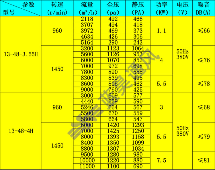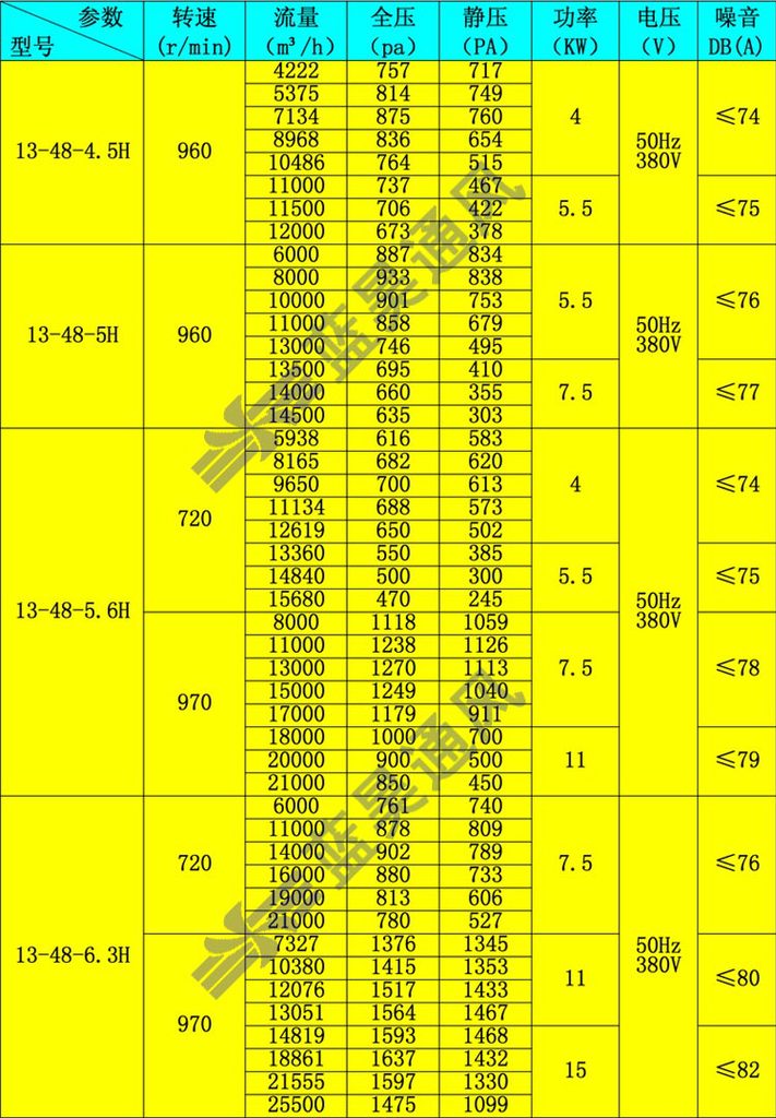 德通牌13-48-H柜式抽油烟风机参数: