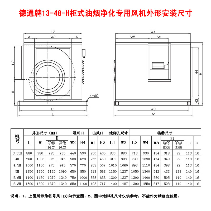 德通牌13-48-H柜式抽油烟风机特点: