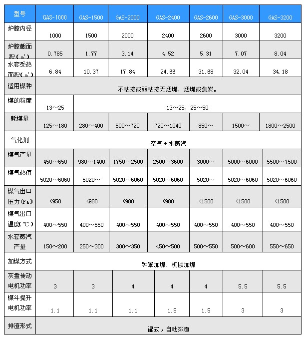 煤气发生炉 详细参数: