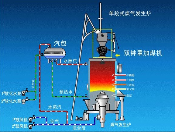 单段煤气发生炉主要特点: