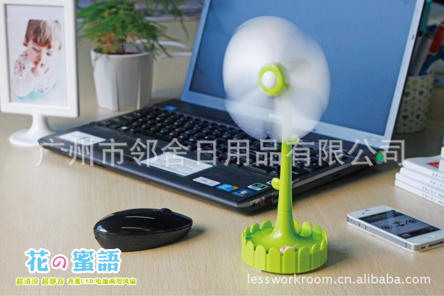 花园USB风扇,扇叶可以拆装DIY,体验自己动手丰衣足食的快乐,还可以添加香水哟,在风扇转动时,香水的味道随空气流动,使你的房间里到处弥漫着香水味道!!!