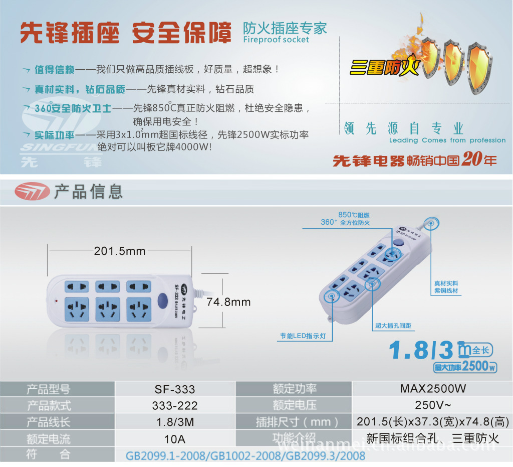 5.请不要在容易被踩到的地方使用本插座。