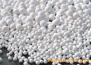 活性氧化铝瓷球是具有很多毛细管道的白色球粒,有很多毛细孔通道,这些孔道的表面有较高的活性,能对气体,蒸汽,液体的水份具有选择吸附本领。在一定条件下干燥深度可达-70℃以下的露点,饱和可在175℃-400℃加热除水而复活,能进行多次,还可从染污的氧、氢、二氧化硫中吸附润滑油及其它油类蒸汽,并可做催化剂或载体。广泛用于石化、炼油、电子、乙烯、丙烯、空气等干燥装置,已在全国许多双氧水厂,化肥厂,制氧厂和石油化工炼油单位使用,并取得了良好效果。