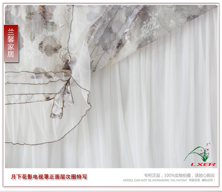 电视罩款式新颖,质量优良,采用最新流行的高雅颜色色,柔软,细腻,耐洗,装扮您美丽的家,温馨可人,典雅的的花朵,可为您的房间增添不少色彩,尽显美观实用兼具浪漫心情的作用哦!