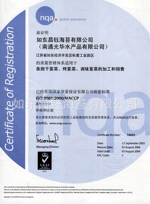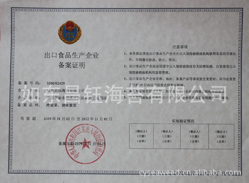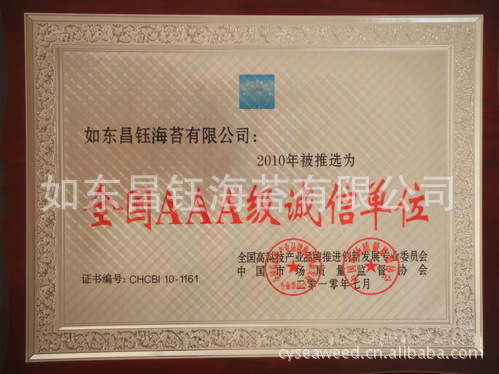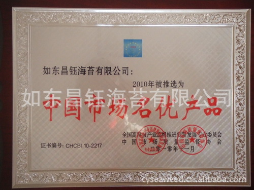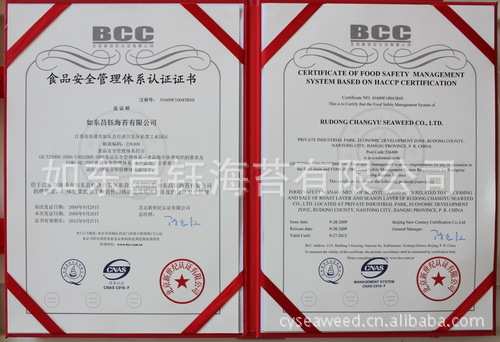 江苏如东昌钰海苔有限公司(二厂)、南通光华水产品有限公司(一厂)、南通新宇水产品有限公司(育苗、养殖),是一家综合性的海苔生产出口老牌企业,常年大量供应ABCD各等级,全型、半切、六切、七切、八切等各规格的烤海苔(烤紫菜)系列,调味海苔(味付海苔)系列,干海苔、海苔粉、海苔切丝、海苔脆片等等。