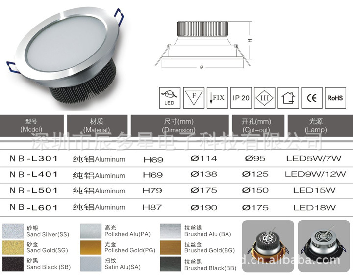 产品:3寸LED筒灯5W,采用CREE/汉半/三星/流明斯/晶元芯片灯珠,欢迎打样。