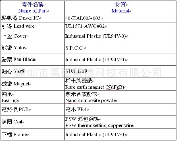 生产工厂已通过了ISO9001和ISO14001管理质量认证体系,我司的“禹臣”散热风扇已获美国UL及德国TUV、欧盟CE等安规认证。