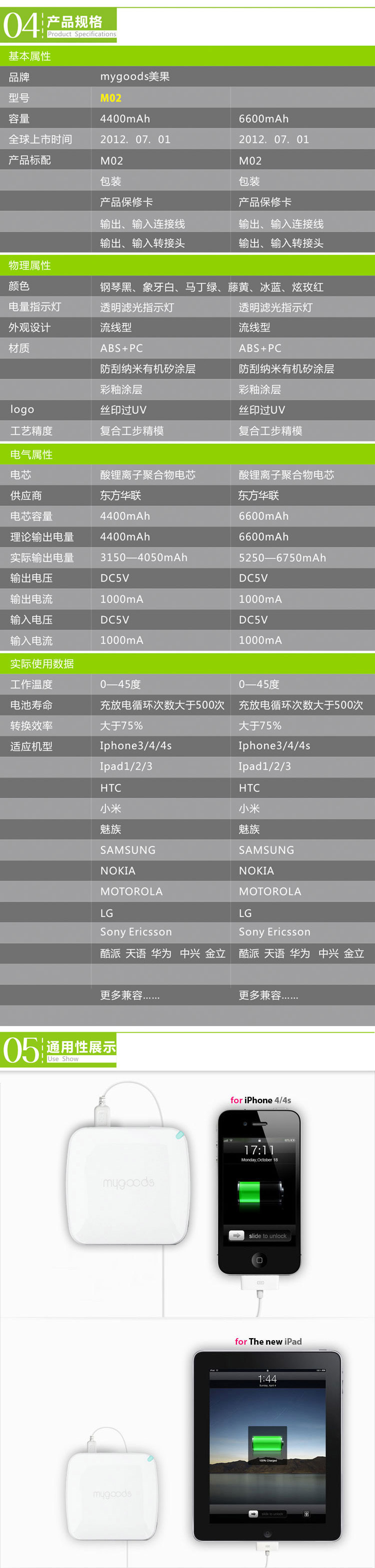美果M02 移动电源4400毫安 苹果 HTC便携式手机充电宝 外置电池批发