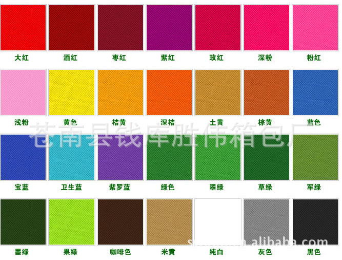 颜色: 任何颜色规格(Size) 按客人实际要求材料(Material 无纺布、不织布、PP特点: 绿色环保,可回收和重复使用,易携带, 经久耐用,质轻但可负重用途(Usage) 适用于广告促销,包装,购物,旅行,储物等包装(Packing) 胶袋/纸箱包装,符合出口要求服务:市内包送货,市外具体商议 欢迎来图来样订做请将款式、数量、规格(宽×高×侧)、布料厚度、布料颜色、印刷内容、缝合工艺等告诉客服人员,便于我们准确报价。