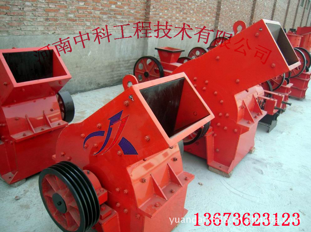 锤式破碎机用于破碎各种中硬且磨蚀性弱的物料。其物料的抗压强度不超过100MPa,含水率小于15%。被破碎物料为煤、盐、白垩、石膏、砖瓦、石灰石等。还用于破碎纤维结构、弹性和韧性较强的碎木头、纸张或破碎石棉水泥的废料以回收石棉纤维等等。此外,锤式破碎机不仅可用于破碎生产线,制砂生产线,也可在选矿生产线中替代圆锥式破碎机。锤式破碎机的主要工作部件为带有锤子(又称锤头)的转子。转子由主轴、圆盘、销轴和锤子组成。电动机带动转子在破碎腔内高速旋转。物料自上部给料口给入机内,受高速运动的锤子的打击、冲击、剪切、研磨作用而粉碎。在转子下部,设有筛板、粉碎物料中小于筛孔尺寸的粒级通过筛板排出,大于筛孔尺寸的粗粒级阻留在筛板上继续受到锤子的打击和研磨,最后通过筛板排出机外。