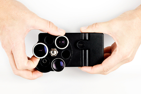 手动换镜头,应该不是很麻烦。可以人要是懒一点儿呢?那就多花钱呗,这一款iPhone Len Dial镜头转换拨盘,就省却了手动更换的麻烦。轻轻转动选择自己喜欢的镜头就可以了。