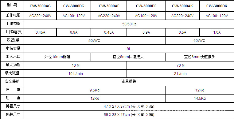CW-3000AK:可应用于两个1.5KW的CNC主轴上或焊接设备