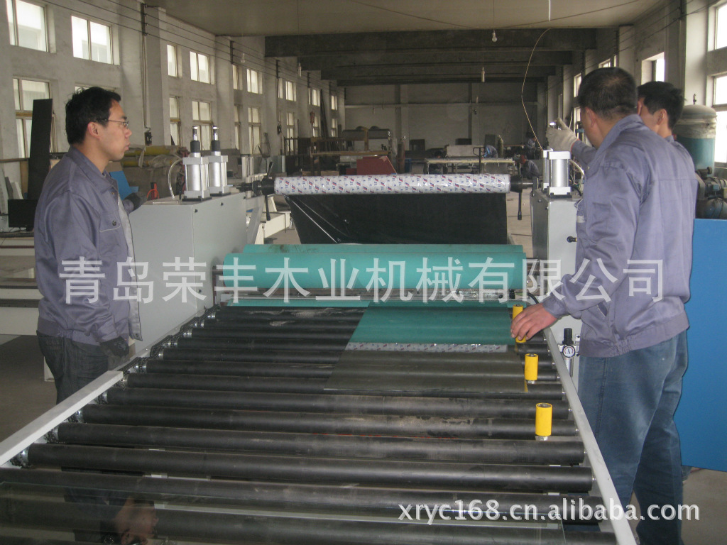 This machine adopts air pump to lift the upper roller, Frequency Converter controls the working process, the operation is simple and there is no wrinkle on the finishing membrane .This machine is suitable for sticking membrane on the smooth board surface.