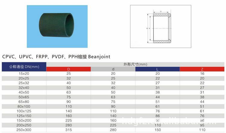 缩接 管件 CPVC、UPVC、FRPP、PVDF、PPH 产品丰富,专业生产