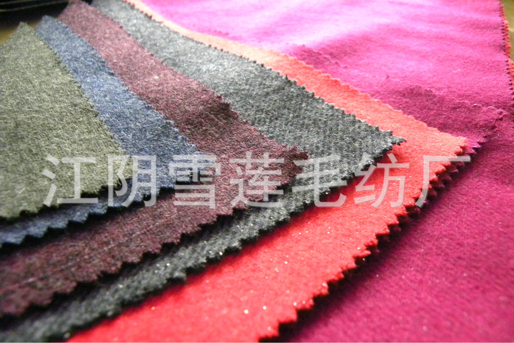 我厂是一家专业生产各类粗纺呢绒面料的企业,主要产品有法兰呢、顺毛呢、立绒、麦尔登,同时还生产其他类粗纺面料,包括、学生呢、大衣呢、人字呢、斜纹呢、格子呢、维罗呢、圈圈呢等。产品远销欧洲、东南亚、韩国、日本等多个国家和地区并赢得了很高的声誉!目前我厂拥有世界先进的生产设备和完善的检测手段以及经验丰富的工程技术人员,形成纺、织、染生产一条龙流水线,从小样设计,到大货订单,准确及时,适应多品种,小批量,交期紧,难度大的订单。