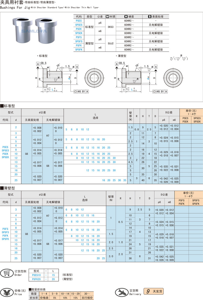 夹具用衬套-带肩标准型/带肩薄壁型-
