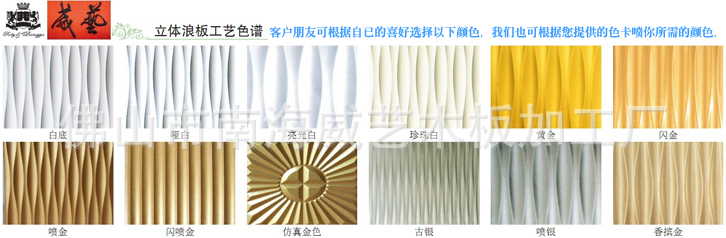 本色谱可以喷在任意一款:波浪板、通花板、浮雕板产品上。我们也可以