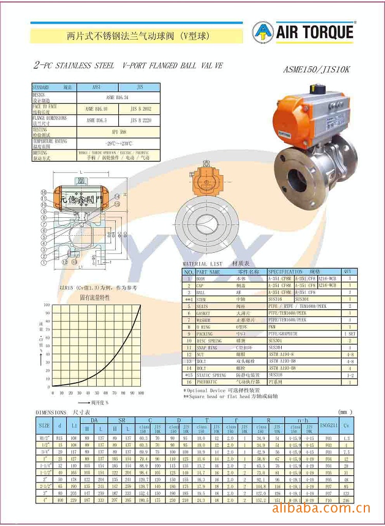 气动阀是阀体与执行器组成,通过压缩空气压力使执行器90度角旋转,从而打开和关闭阀门。阀体材料有316,304,PP,PVC,UPVC,PVDF,CPVC,执行器材料合金铝氧化处理。是石油、化工、电力、矿山、冶金、轻工、交通、供水、船舶、锅炉等项目工程建设的理想配套产品。