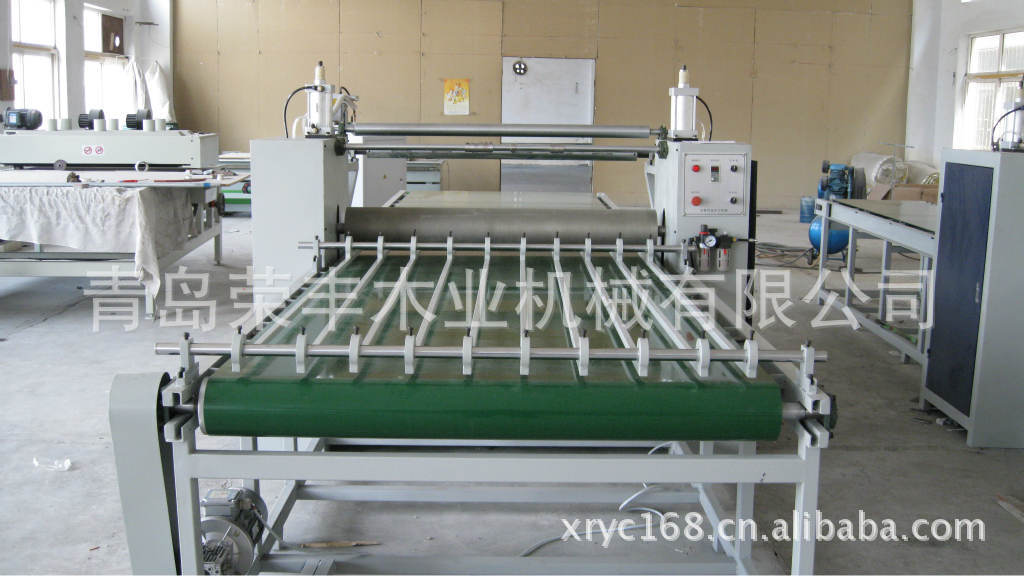 This machine adopts air pump to lift the upper roller, Frequency Converter controls the working process, the operation is simple and there is no wrinkle on the finishing membrane .This machine is suitable for sticking membrane on the smooth board surface.
