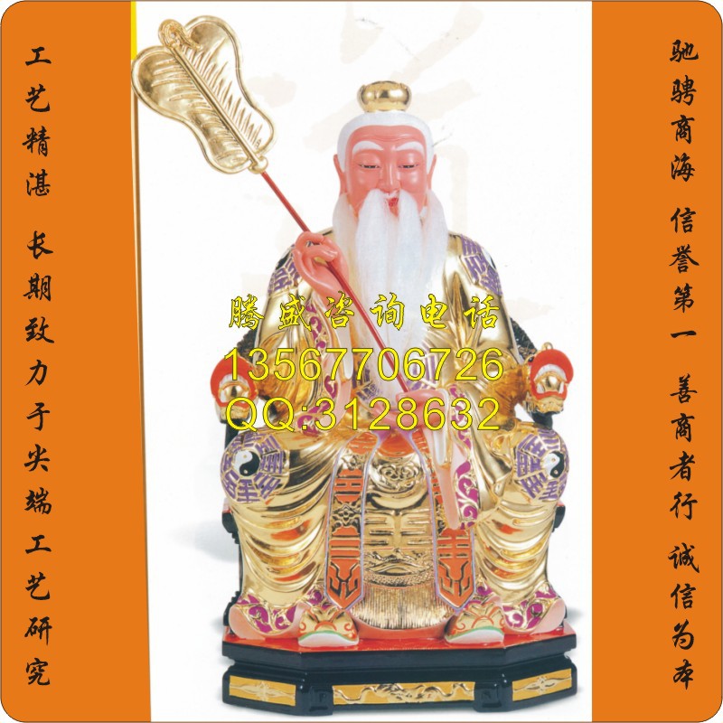 玻璃钢道德天尊神像,彩绘神像道德天尊,贴金道德天尊,道教三清