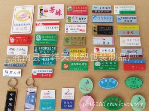 (3)微量射出产品有:PVC匙扣(吊牌)、PVC胶牌、服装吊牌、PVC软胶商标、手挽带、卡通相框、冰箱贴、PVC软胶杯垫、餐垫、LOGO胶章、汽车脚踏垫、水晶滴胶、LOGO拉链头、反光标牌、莹光滴塑水晶标、绒底章等辅料。
