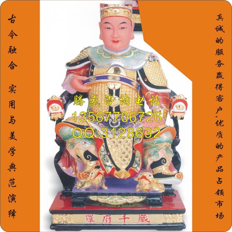 玻璃钢神像五年千岁,罗府千岁神像,彩绘罗府千岁,贴金罗府千岁