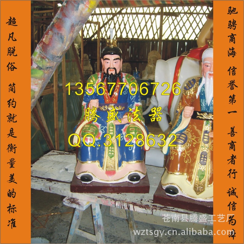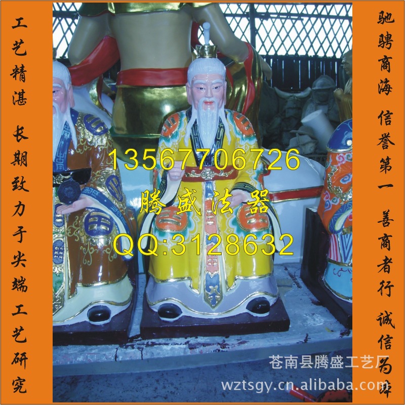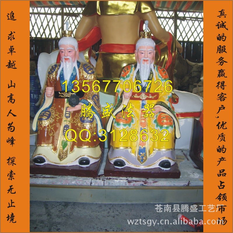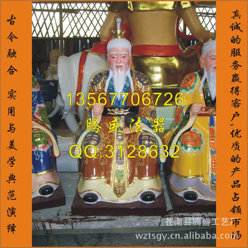 名称:道教三清 材料:玻璃钢(GRP) 工艺:塑造 表面工艺:彩绘