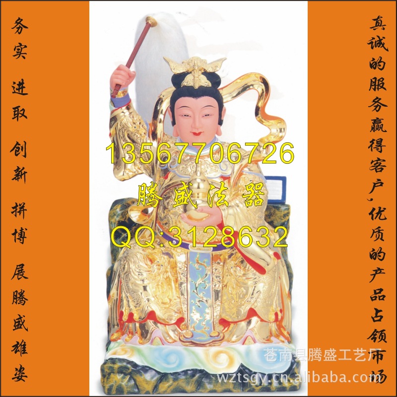 玻璃钢九天玄女神像,贴金神像九天玄女,彩绘九天玄女神像