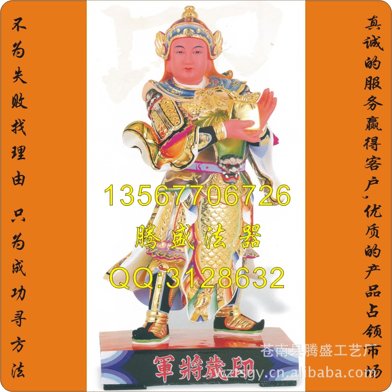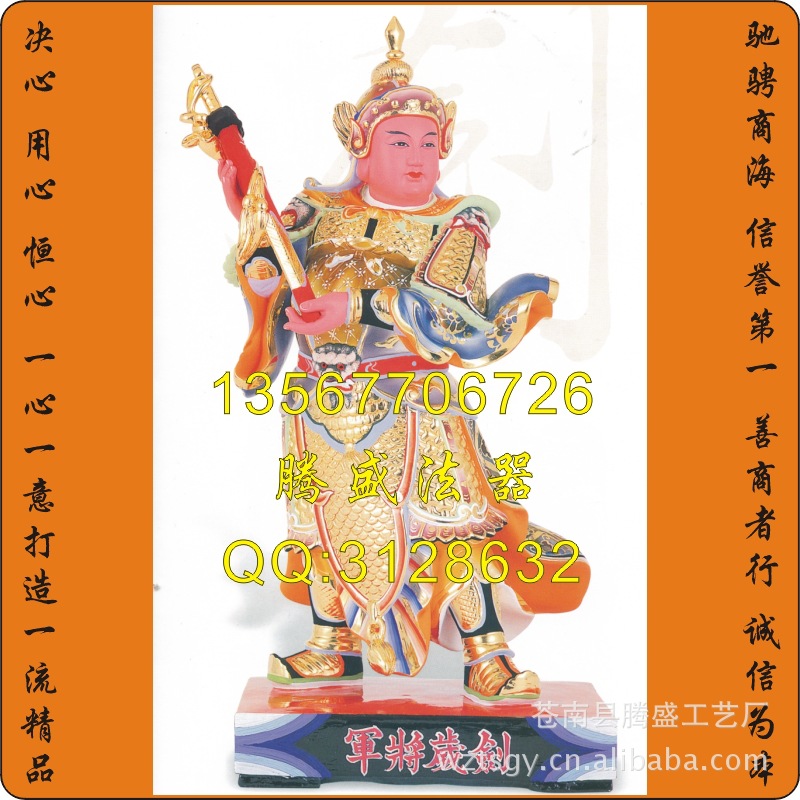 玉皇大帝侍神:玻璃钢持剑将军,铸铜持印将军,贴金神像生产厂家
